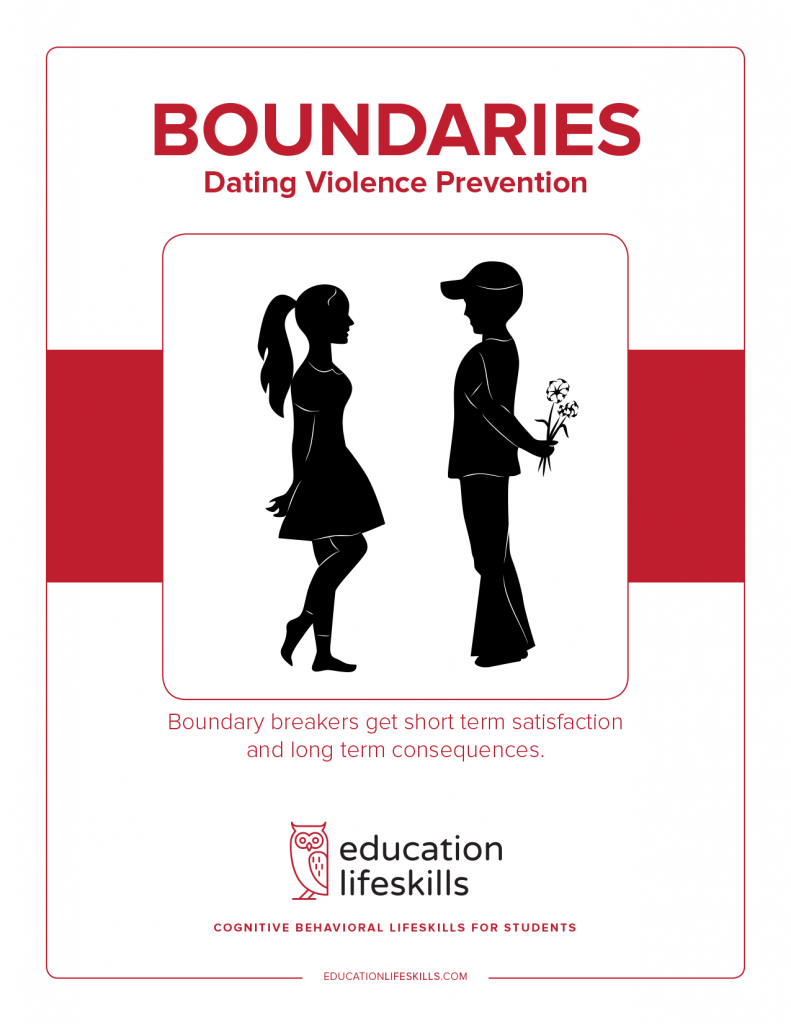Boundaries – Teen Dating Violence Prevention is a cognitive awareness course designed to help teens become safer and more aware of their own and others’ boundaries. It is written in a story format as it follows individual lives and consequences of both victims and perpetrators. It is also a short course on Constitutional rights that protect people from abuse and their pursuits of happiness. It is one of several short courses that all come together to help teens navigate the many difficult obstacles they face and stay out of harm’s way into adulthood.